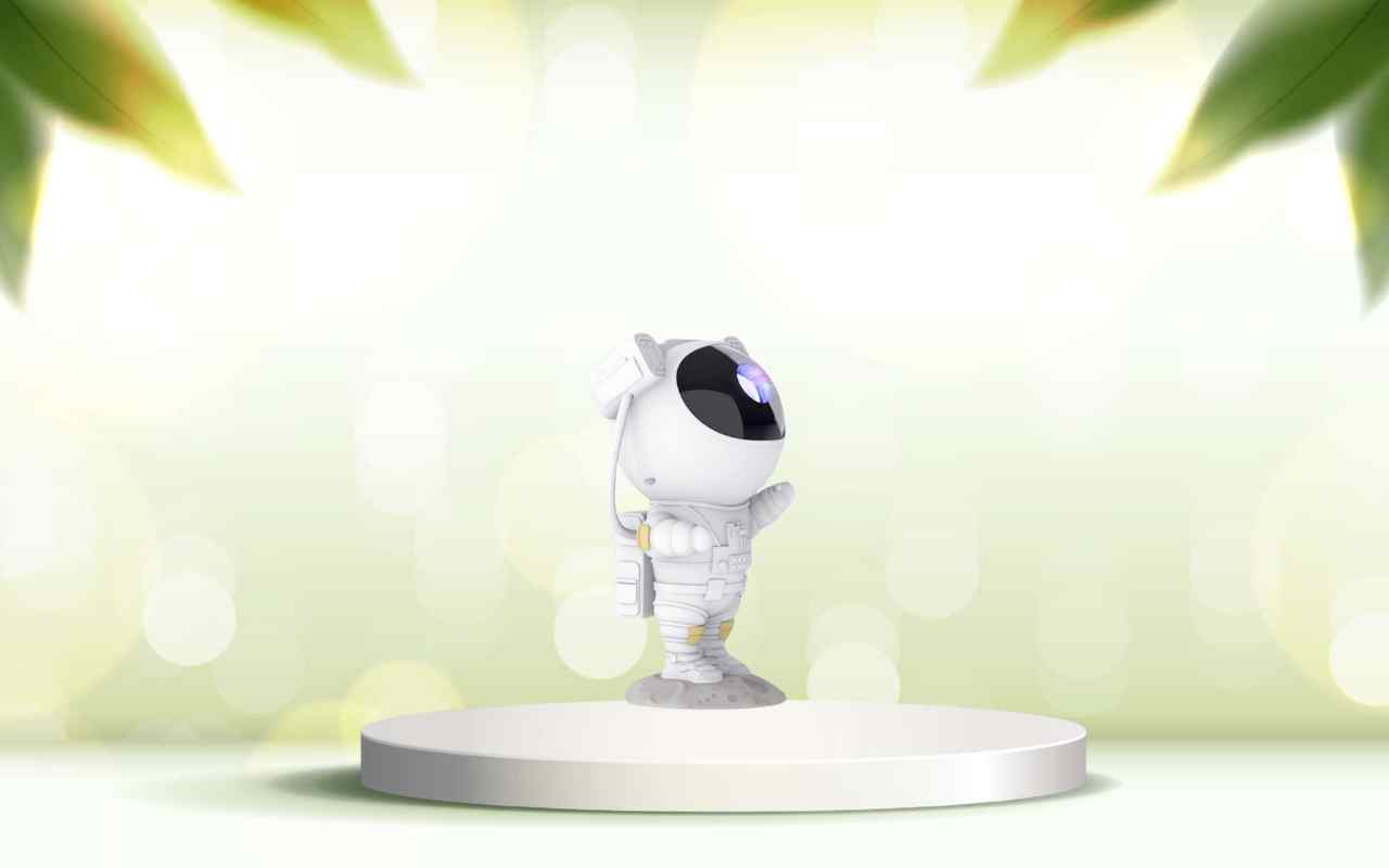 Uno degli aspetti che rendono AstroSky unico è il suo design originale a forma di astronauta. Non solo rappresenta un oggetto decorativo moderno e affascinante, ma è anche estremamente pratico: misura soltanto 12 x 23 cm e può essere posizionato ovunque, dal comodino alla scrivania, senza ingombrare gli spazi. Grazie alla sua struttura compatta e leggera, puoi spostarlo facilmente da una stanza all’altra per creare nuove suggestioni ogni volta che lo desideri.